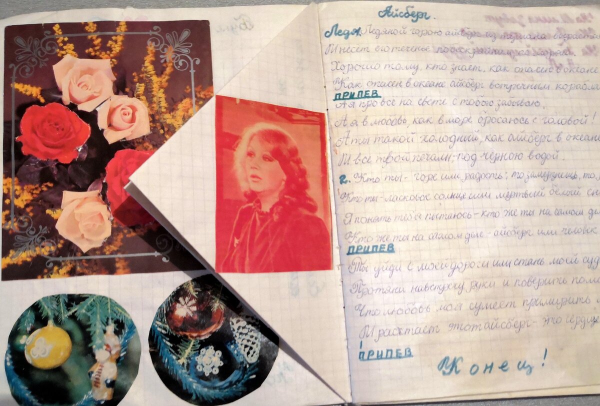 Как мы жили без интернета в детстве? А мы его творили, своими руками. Брали тетрадь и превращали ее в калейдоскоп песен, картинок, житейской мудрости и рисунков. После череды бесконечных переездов мы обнаружили в гараже огромную коробку. В ней хранилось все то, что было дорого моему детскому сердцу в далеком советском прошлом. Коллекция календариков, открыток, марок, значков, оберток от шоколада и жевательной резинки и, конечно же, песенники и разнообразные «девичьи» тетрадки. Сегодня я «полистаю» песенник, который был практически у каждой девочки в 80-е годы прошлого века. Предполагаю, что я могла его оформлять во 2-3 классе. 1. Тексты песен Песни брали из взрослых журналов, переписывали друг у друга или воспроизводили по памяти. Плееры появились намного позже. В редких семьях были «двухкассетные» магнитофоны. В моем доме часто звучала редкая по тем временам «иностранщина» (мама находила где-то очень модные записи). А в песенник строчились непонятные песни советской эстрады, которые б