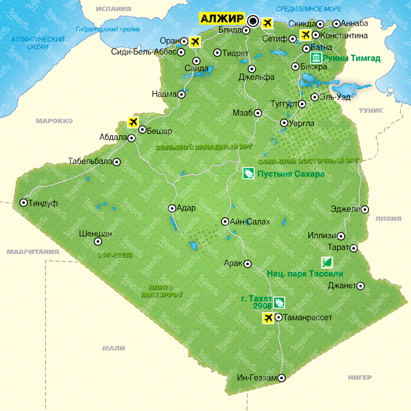 Алжир - крупнейшая страна Африки, располагающаяся на севере материка. В середине 20 века Алжир обрёл независимость, прихватя с собой кучу территорий, но проблема в том, что почти все они - это безжизненная пустыня. Основная жизнь находится на севере возле Средиземного моря.