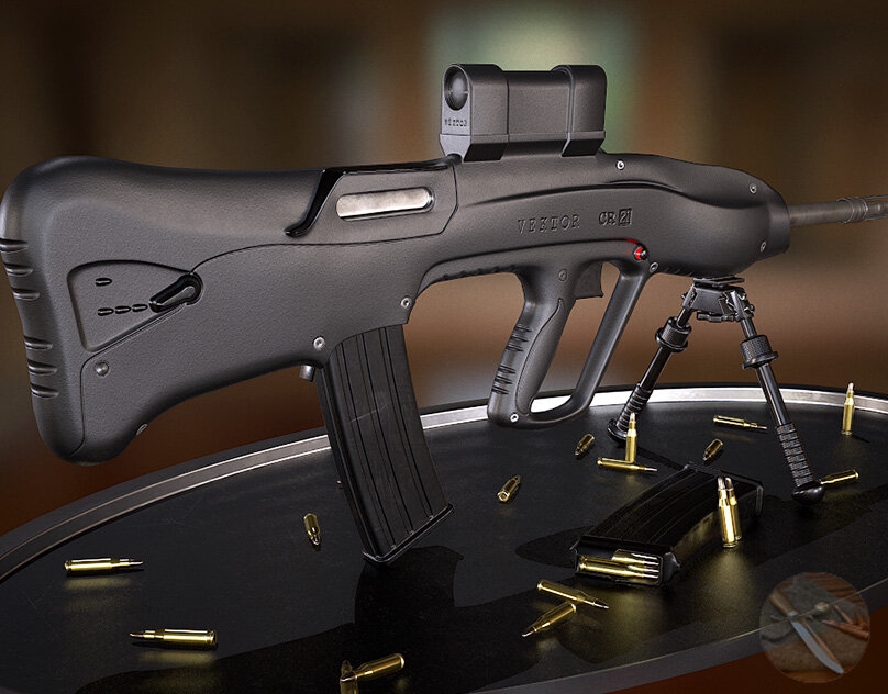 Винтовка XXI века. Она разработана по заказу южноафриканской армией в настоящее время поступает на вооружение парашютно-десантной бригады и бригады специального назначения армии ЮАР. На нее будут заменены все состоящие на вооружении винтовки R4 и их укороченные модификации R5 и R6. Фирма «Vektor» сообщила о заключении контрактов на поставку винтовок CR-21 армиям других стран мира. Особенности конструкции CR-21 выполнена по ставшей весьма популярной в конце XX века компоновочной схеме «буллпап» и имеет ярко выраженный футуристический дизайн. Впрочем, при ближайшем рассмотрении оказывается, что за исключением пластмассового корпуса СК-21 мало чем отличается от винтовки R4 и советского АК-47, на базе которого в свое время была спроектирована винтовка GaUl - прототип R4. Так, у R4 заимствованы следующие узлы и механизмы: модифицированная ствольная коробка, затвор, затворная рама, приспособленная для взаимодействия с новым механизмом перезаряжания, возвратный механизм и газоотводная трубка