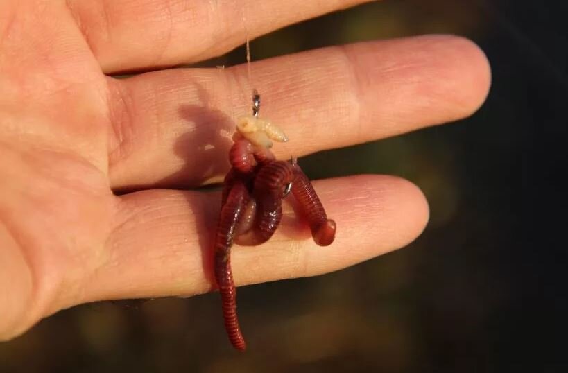 Для этой цели навозных червей лучше не использовать, так как для такой ловли они слабоваты, очень скоро обрываются, и требуется большой запас. Превосходно зарекомендовал себя обычный белый земляной червяк, он весьма крепок, к тому же рыбе он нравится.