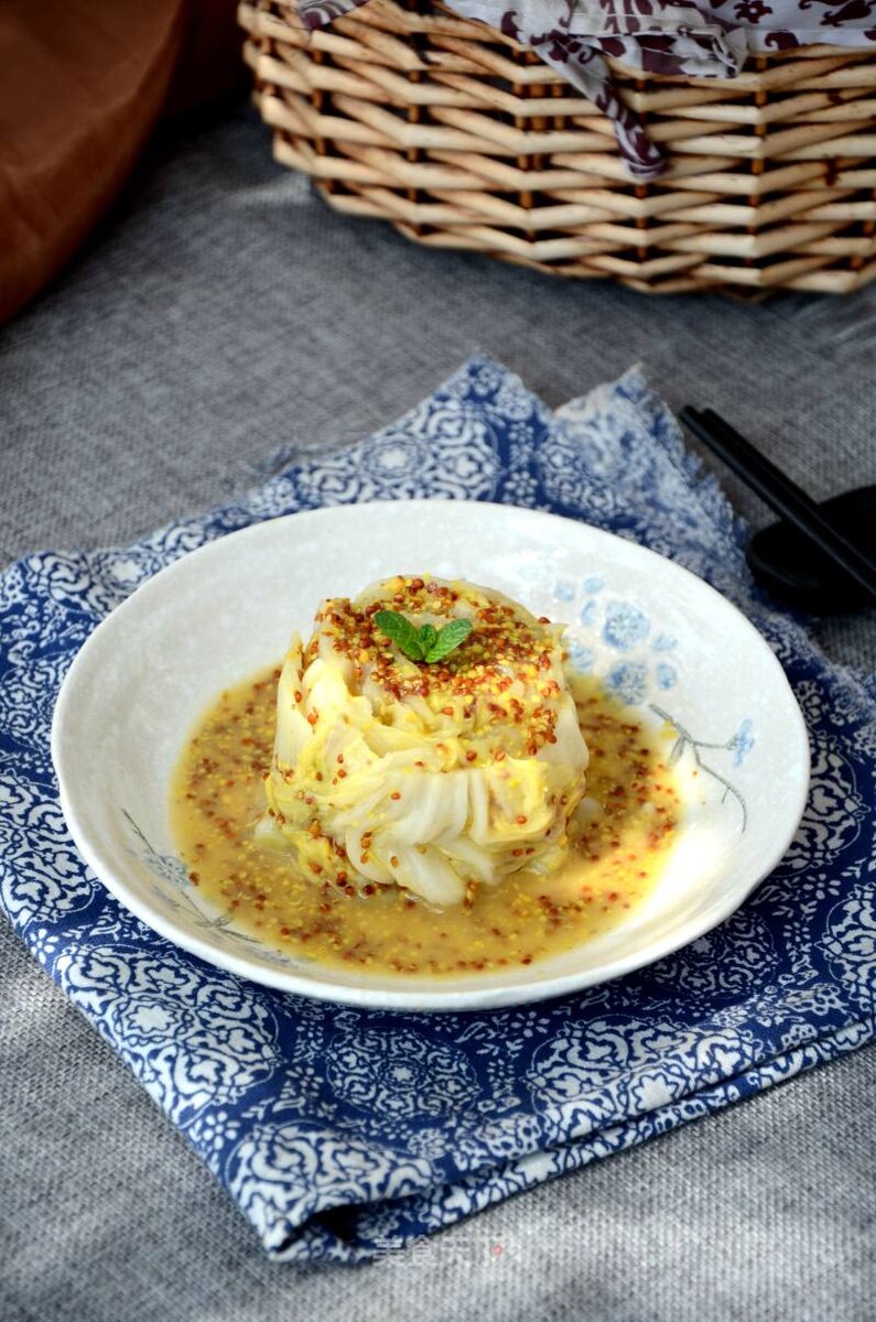 Это очень простой рецепт Пекинской кухни, позволяющий приготовить реально вкусную закуску. Вы сможете обойтись буквально тремя ингредиентами, основным из которых является пекинская капуста. Что потребуется Для рассматриваемого блюда возьмите: Все приведенные выше ингредиенты нетрудно купить в каком угодно супермаркете. Приготовление Первым делом поставьте на огонь кастрюлю с водой. Пуская она закипит. Снимите с капусты верхние грубые листья. Промойте кочан под краном. осторожно удалите кочерыжку. Нарежьте капусту поперек сегментами шириной в 4-6 см. Каждый фрагмент кочана (он похож на розочку), не разрушая его структуру, бланшируйте 30 секунд в кипятке, положив на дуршлаг. Затем заготовку переверните вверх тормашками и повторите бланширование. Отожмите из капусты влагу. Действуйте без особых усилий, стараясь не деформировать листья. Смешайте 1 ст.л горчицы с таким же количеством уксуса. Уложите розочку на тарелку, осторожно раздвиньте листики. Полейте приготовленным маринадом. Снова со