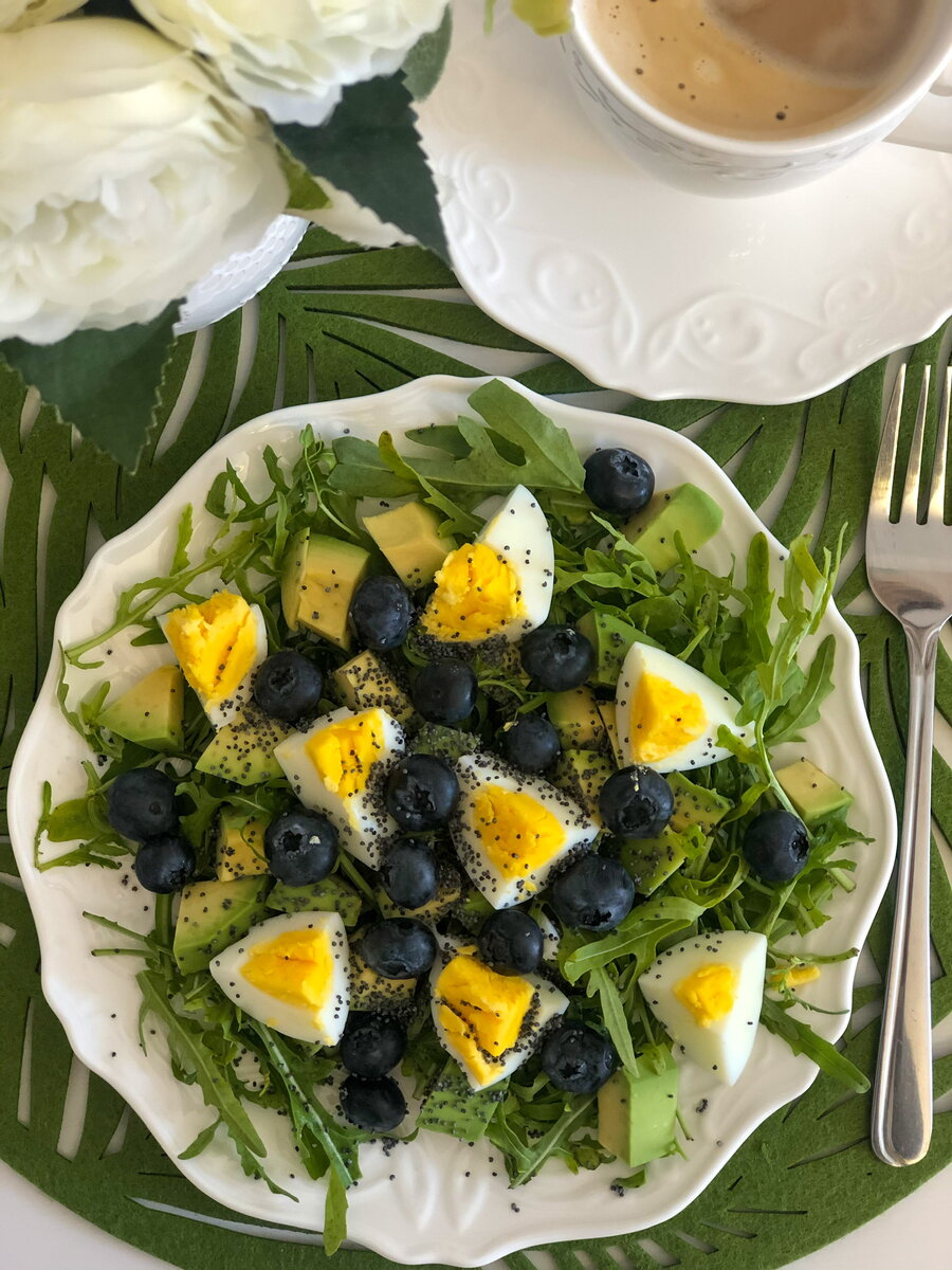 Девочки, я вам предлагаю сегодня устроить обмен рецептами🥳! Я вам выкладываю любимый рецепт яркого, легкого и необычного салата, а вы мне присылаете свой любимый рецепт летнего салата. Присылайте прямо в комментариях, чтобы все девчонки могли увидеть рецепт! Самый приглянувшийся мне рецепт салата я опубликую с ссылкой на вас у себя в ленте завтраков. Договорились😘? Буду ждать🤗 А сейчас рецепт для вас! Нам понадобится: 🥑 авокадо 🥑 пучок рукколы 🥑 75 г голубики (черники) 🥑 1 яйцо 🥑 1 ст ложка семян чиа (если их нет, можно использовать маковые зернышки) 🥑 1 ст ложка лимонного сока 🥑 1 ст ложка оливкового масла 🥑 соль - перец по вкусу Приготовление: 👉 Готовим заправку для салата: перемешиваем лимонный сок, масло, соль и перец 👉 Отвариваем яйцо, остужаем, очищаем и нарезаем кубиками 👉 Рукколу промываем и обтираем. Выкладываем красиво на тарелку 👉 Авокадо очищаем, разрезаем и выкладываем на рукколу. Сверху выкладываем кубики яйца 👉 Голубику моем, обтираем и рассыпаем свер