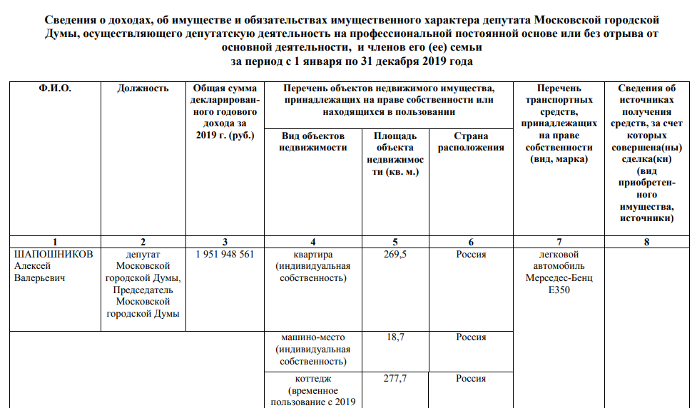 Как председатель Мосгордумы заработал почти 2 млрд. рублей за 2019 год.