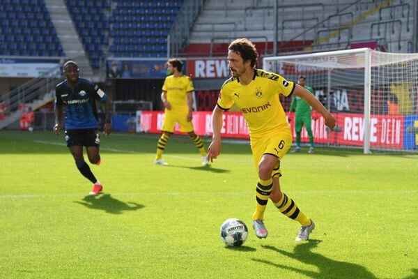 В матче 29-го тура чемпионата Германии дортмундская «Боруссия» разгромила «Падерборн» со счётом 6:1. Встреча состоялась в Падерборне на стадионе «Энерджитим-Арена». Счёт был открыт на 54-й минуте. Автором забитого мяча стал Торган Азар. Через несколько минут преимущество дортмундцев увеличил Джейдон Санчо, которому ассистировал Юлиан Брандт. На 72-й минуте хозяева сократили разрыв в счёте, отличился Уве Хунемайер, который реализовал 11-метровый. Третий гол забил Санчо, который на 74-й минуте отличился с передачи Азара. На 84-й минуте отличился Ашраф Хакими с паса Марселя Шмельцера. Через пять минут ещё один гол забил Шмельцер. Окончательный счёт установил Санчо, оформив хет-трик.