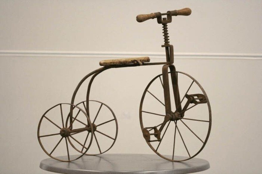 В 2017 году на музейный учет был поставлен детский велосипед, так сказать, «старинный». Он, как и более поздние его собратья, трехколесный. На этом сходство заканчивается. «Детский транспорт» собран из толстых металлических пластин, за столетие сильно проржавевших. Рукоятки, сиденье и педали - деревянные. Никакой резины и следов краски нигде не обнаружено. Так и хочется сказать: «костотряс». Это забавное название из прошлого характеризует первые велосипеды как не самый комфортный вид транспорта. В России велосипеды стали появляться в Петербурге во 2 пол. XIX века. Тогда они считались роскошью; позволить себе этот вид транспорта мог далеко не каждый. К 1880 году в столице зарегистрировано 100 велосипедистов. Самый знаменитый из первых велосипедистов России - император Александр II; он совершал на своем "костотрясе" велосипедные прогулки по Царскому Селу. Кататься по Петербургу в то время не мог даже царь: ездить на велосипеде по улицам города было строго запрещено. Считалось, вел