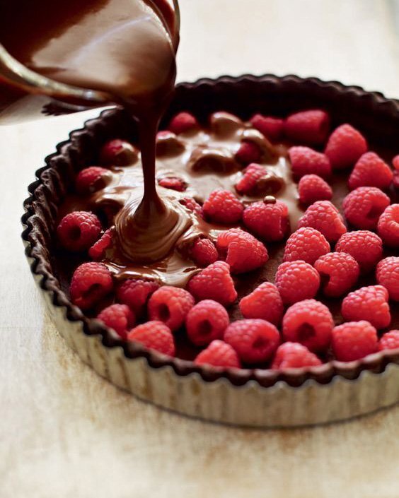 Шоколадный тарт с малиной ИНГРЕДИЕНТЫ: СПОСОБ ПРИГОТОВЛЕНИЯ: ▪️Шоколадное печенье измельчаем в крошку и перемешиваем с растопленым сливочным маслом. Дно формы для тарта выстилаем пергаментом и выкладываем в нее шоколадно-масляную крошку. Хорошо утрамбовываем, формируя корж (дно+бортики). Помещаем в холодильник, пока будет заниматься другими процессами. ▪️Нагреваем сливки вместе с маслом практически до кипения, а затем заливаем этой смесью кусочки шоколада. Перемешиваем, пока шоколад полностью не расплавится. ▪️Слегка охлаждаем шоколадную начинку, а затем выливаем часть на корж. Выкладываем на шоколад ягоды малины и заливаем сверху шоколадным ганашем. Помещаем пирог в холодильник на несколько часов: шоколад должен застынуть. Черничный десерт с йогуртом ИНГРЕДИЕНТЫ: СПОСОБ ПРИГОТОВЛЕНИЯ: ▪️Желатин замачиваем в небольшом количестве холодной воды (она должна его полностью покрыть) и оставляем до набухания. ▪️Йогурт смешиваем с мороженым, сахаром, конфитюром и черничным пюре (протертым чере