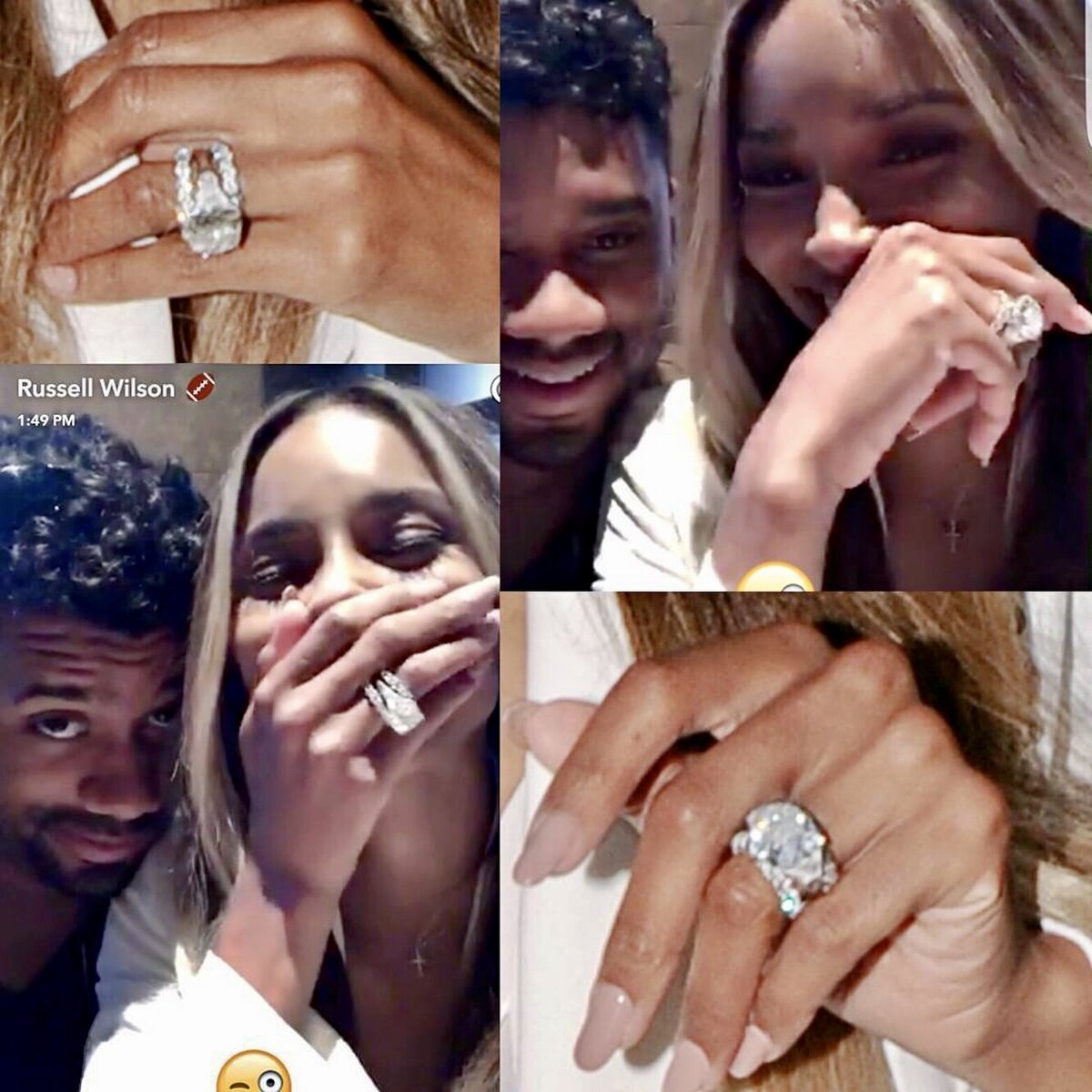 Певица Сиара (Ciara) вышла замуж за футболиста Рассела Уилсона (Russell Wilson). Торжество прошло в Британии, в графстве Чешир. Сиара выходила замуж в белоснежном платье Roberto Cavalli. В зале, где проходила свадьба, было много цветов и свечей. Гости рассказывают, что в замке, несмотря на его строгость, была невероятно романтичная атмосфера. Жених певицы, Рассел Уилсон , выбрал элегантный классический костюм с фраком от Giorgio Armani из линии Made to Measure. Известно, что над впечатляющим свадебным платьем Сиары работал креативный директор бренда Roberto Cavalli – Питер Дундас, который и опубликовал на своей странице в Instagram эскизы наряда, разработанные специально для звездной невесты. Удивительной красоты свадебный наряд с V-образным декольте и длинным шлейфом был декорирован тончайшим ажурным кружевом, тюлем и потрясающими флористичными узорами, расшитыми мерцающим бисером. Белоснежные атласные туфли на шпильке к платью Сиары создал именитый обувной «кутюрье»