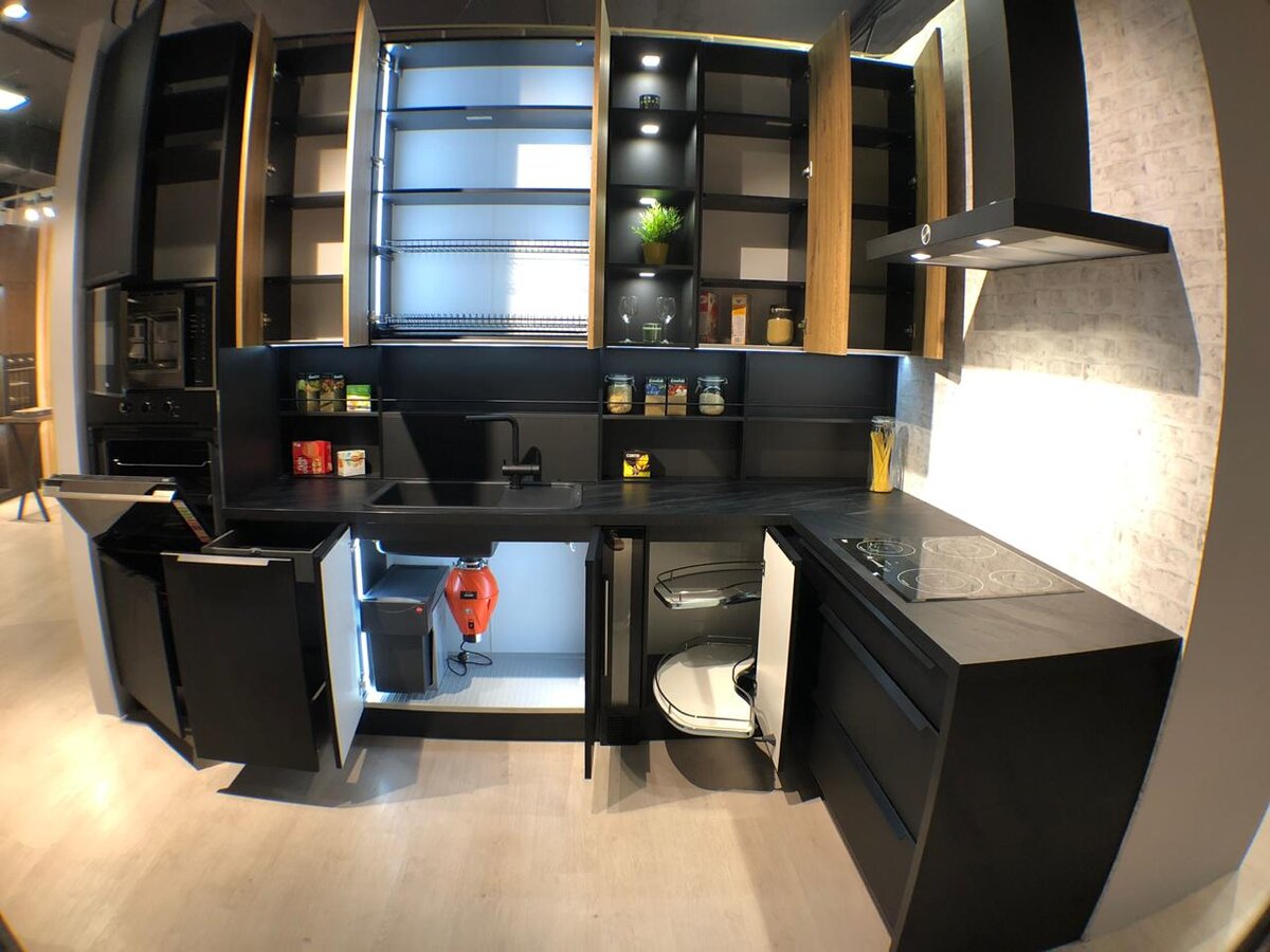 - И напоследок: если на счету каждый сантиметр, избегайте круглых форм, используйте углы. Кстати, шкаф с квадратными или прямоугольными лотками, а также мусорный контейнер прямоугольной формы делает пространство органичным и упорядоченным.