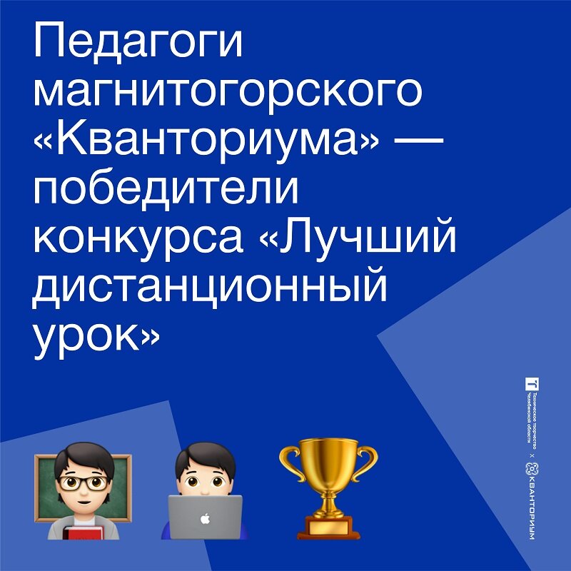 Павел Парков и Владислав Балакан, наставники детского технопарка «Кванториум» г. Магнитогорск стали победителями областного конкурса «Лучший дистанционный урок» в номинации «Лучшее дистанционное занятие в системе дополнительного образования детей». Поздравляем! Областной конкурс проводился с целью подержать отечественную систему образования в период пандемии коронавируса, выявить лучших учителей, чьи дистанционные практики можно будет затем интегрировать в обычные занятия. «В эпоху цифровых технологий учителю мало быть эрудированным человеком, профессионально знающим свой предмет, имеющим творческие идеи и любящим детей. Современный педагог должен быть мобильным, готовым к саморазвитию, способным быстро ориентироваться в изменяющихся нестандартных условиях и на практике использовать инновационные педагогические технологии», — считает Владислав Халамов, руководитель Регионального центра технического творчества Челябинской области. Именно такие педагоги работают в магнитогорском технопа