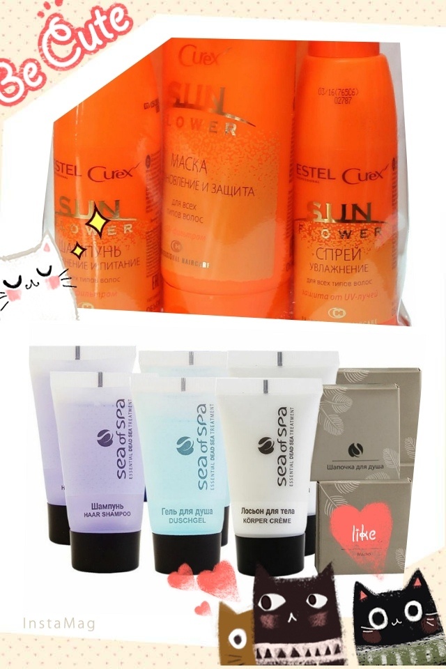Всем привет!Я уже давно когда еду куда-то на море,покупаю с собой небольшие наборы.Выбор сейчас очень большой,как по цене так и свойствам.Все эти средства можно купить в интернет-магазинах: 1)ESTEL CURVEX SUN FLOWER. Очень неплохой наборчик со средствами ухода за волосами.Все эти средства содержат UV-фильтр,что немаловажно летом. В наборе: шампунь увлажнение и питание 100 мл, маска восстановление и защита 150 мл, спрей увлажнение защита - 100 мл. Цена:около 500 рублей 2) SEA OF SPA (набор для путешествий).Страна -производитель-Израиль. У них есть несколько вариаций наборов: Есть например 6 штук в упаковке:лосьон для тела,гель,шампунь,бальзам и т.д. По цене:около 300 рублей со скидками. А есть набор более расширенный,все тоже самое ,что и впрошлом +мыло,шапочка для душа и т.д.Он и подороже,около 400 рублей. Вариаций дорожных наборов у этой фирмы очень много. 3)Что касается косметики,такие наборчики можно непосрдественно в самом дьюти-фри,но и в наших рив-гош и лэтуалях такие набор