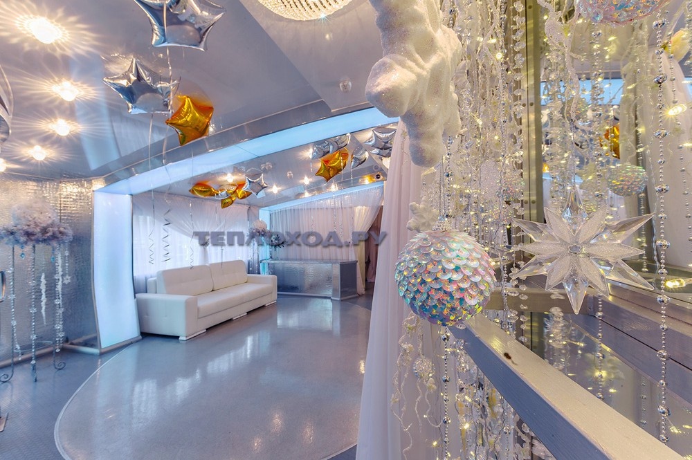 Мишура, конфетти, гирлянды и лесная красавица – это традиционное украшение новогоднего праздника, которое создает атмосферу волшебства. Его заказывает 90% наших клиентов, но сегодня мы хотим предложить Вам в качестве дополнения украшение теплохода воздушными шарами. Это необычно и очень практично, т.к. можно устроить целый «фейерверк» конкурсов с их использованием. Вариантов украшения множество. Можно взять шары с «зимним» рисунком или подобрать цветовую гамму, которая будет ассоциироваться с зимой – белый, голубой, все оттенки синего. Очень эффектно смотрятся фигурки из шаров, например: снеговик, дед мороз, снегурочка или символ нового года. Наши оформители воплотят любую вашу идею.