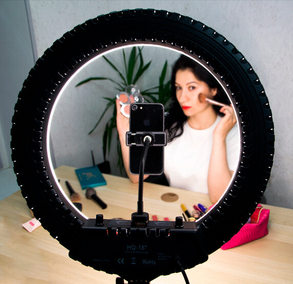 Кольцевая лампа с диаметром 43 сантиметра сочетает в себе все, что нужно для получения красивых снимков и видео. Я бы рекомендовала ее для покупки.