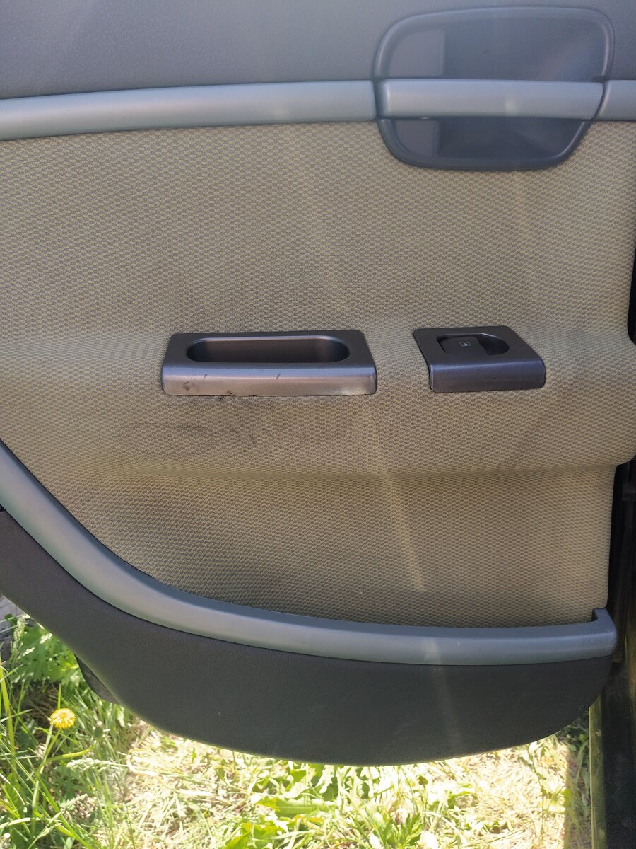 Здравствуйте! Меня зовут Анастасия и я хочу рассказать как я отмыла жуткие разводы с дверей своей машины. При покупки машины, я не заостряла внимание на салон, т.к. это не самое важное. Я понимала, что отчищать машину от грязни, оставленной прошлыми хозяевами, мне придётся все равно. К сожалению, у меня практически вся дверь обита тканью, и вот как все выглядело до того как за нее взялась я. Так же я взялась за места, где висят ремни безопасности Что использовала: 1) Смешиваем воду и средство для мытья посуды (любое) так что было примерно так 2) Находим щётку с мягкими волосками (я не ищу легких путей, поэтому я брала зубную, но с ней процесс не быстрый) 3) Я брала простую тряпку, что убирать пену (не обязательно) 4) Понадобится микрофибра (ОБЯЗАТЕЛЬНО!!!) Ход работы: 1) Нашу смесь брызгаем на участок, побольше. Я не жалела и у меня было много пены. 2) Щеткой начинаем тереть обивку. 3) Если есть пена, мокрой тряпочкой потом все протираем. 4) Микрофиброй все хорошо протираем!!! Она оч