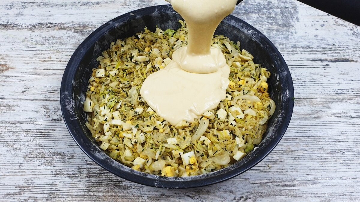 Видео рецепт приготовления заливного пирога с капустой и яйцом можно посмотреть тут 👇👇👇