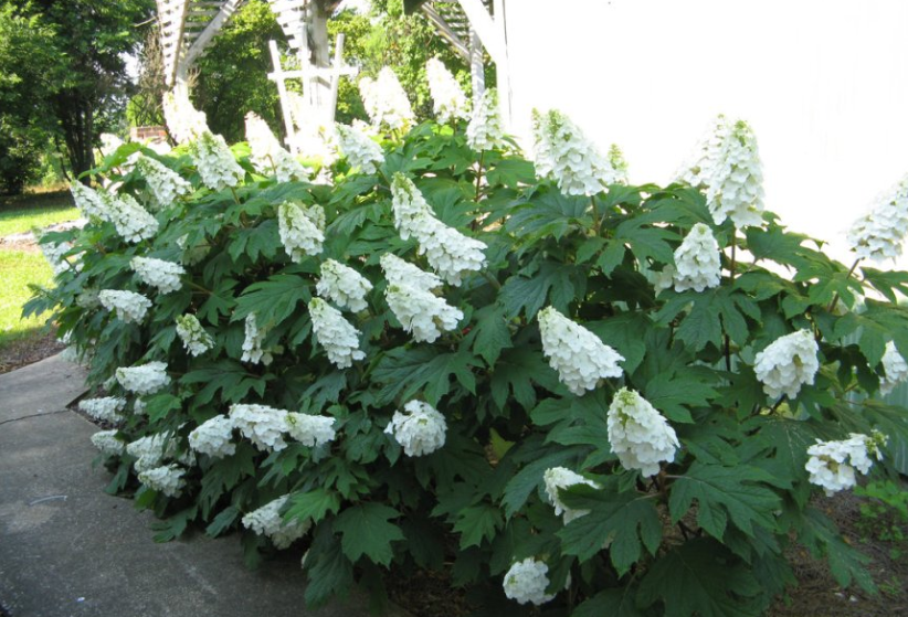 Чтоб украсить свой участок необязательно использовать цветы, в этом деле помогут яркие и необычные кустарники. Хорошо, что в садовых магазинах встречаются разные виды кустарников, которые смогут стать декоративным дополнением дорожек, бордюров, цветочных клумб в огороде. Гортензия дуболистная Гортензия является популярным растением, которое нравится многим огородникам. В период цветения на ней появляются огромные соцветия с яркими красками, они точно станут главным украшением любого дачного участка. А вот что касается вида Гортензия дуболистная, то от обычной гортензии у нее имеется одно отличие – у нее имеются широкие листья. Они по форме напоминают дубовые. Я предлагаю рассмотреть несколько сортов гортензии, которые подойдут для выращивания на дачном участке: · Гармония. У данного вида гортензии наблюдаются огромные соцветия, которые по форме похожи на шар. Окраска цветов белая или кремовая; · Эпплауз. Растение может вырастать в высоту до 2 метров. У нее наблюдаются необычные соцвети