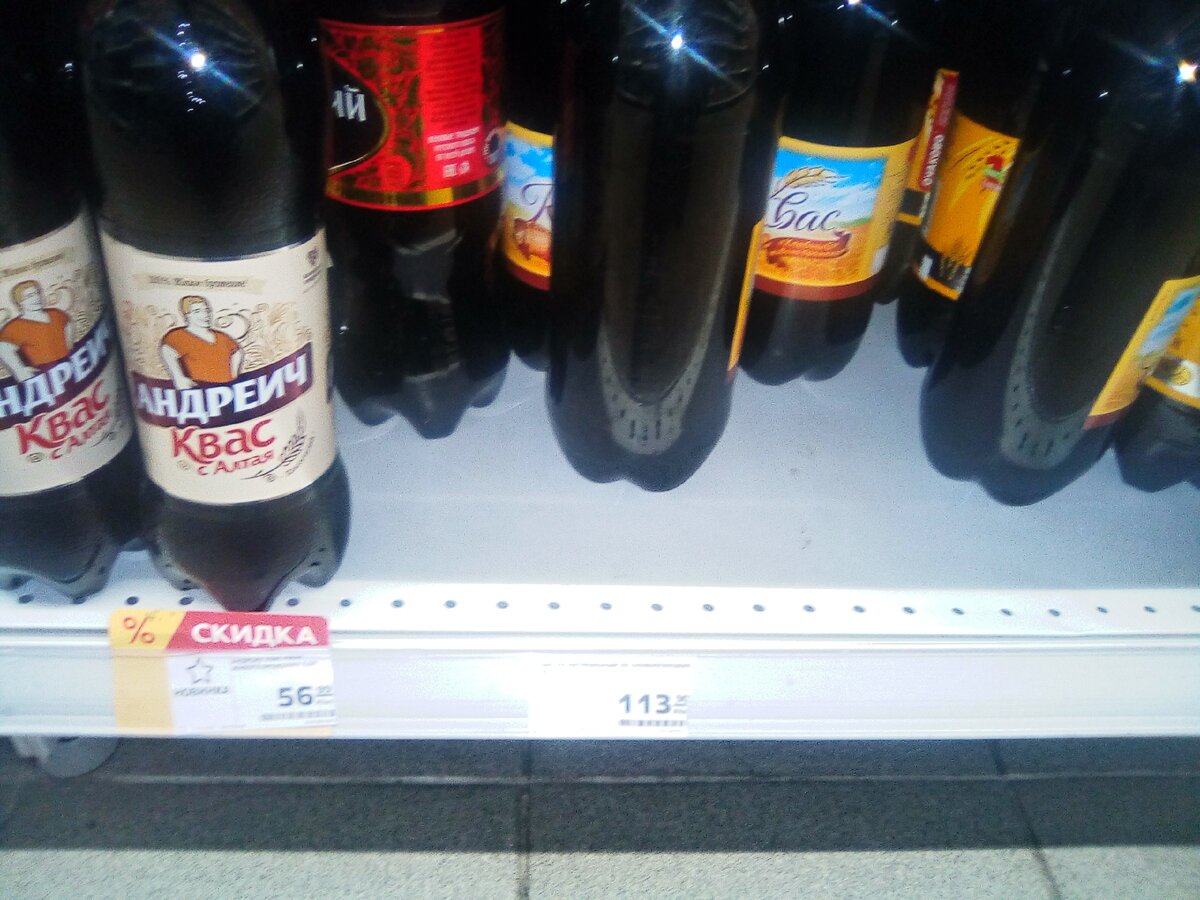 Помните квас из бочки при СССР? Стоил он копейки. Сейчас такого вкусного кваса не купишь, зато цена "кусается". Я научу вас, как сэкономить. Квас, это наш национальный напиток. Его любят многие. Как хорошо жарким летом похлебать окрошечки, или просто выпить кружку холодного и резкого кваса. Но наглые производители совсем обнаглели. Смотрим, дорогие друзья, что же получается: Андреич, со скидкой 56 рублей за полторашку, а вкус так себе. Я беру зимой вот этот - Хлебный квас по 113 рублей, он вкуснее остальных. Вот Андреич без скидки, а Царский квас стоит 82 рубля за литр. Дороже молока и некоторых сортов пива. Откуда взялись такие цены? Какая себестоимость кваса на заводе? Не знаю, но думаю нас просто дурят и получают сверхприбыли на этом продукте. Мы зимой квас не особенно употребляем. Иногда в охотку возьмешь бутылочку, на окрошку. Но вот начиная с мая и по октябрь, жена сама его делает. Летом он расходится на ура. Она берет закваску у подружки и все дела. Вот рецепт, который я у н