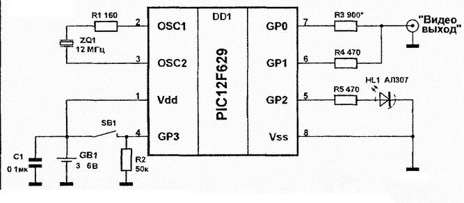 На днях попалась очень простая схема генератора ТВ сигналов, при помощи которого можно выводить на экран телевизора несколько, определенных прошивкой, картинок. Все это происходит через AV-интерфейс телевизора. Почему бы и не собрать... Тем более можно попробовать и проверять телевизоры после ремонта при помощи сего девайса. Шучу. Это конечно же не может являться полноценным прибором для проверки)), но никто не мешает им пользоваться.