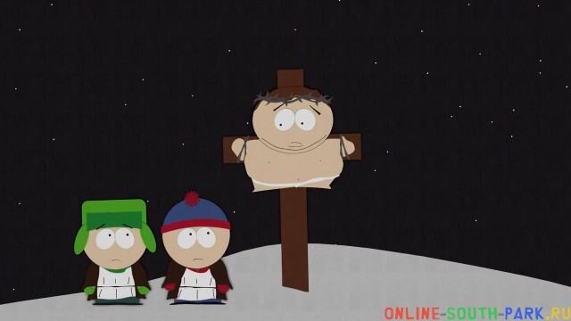 3 сезон 2 серия: Самопроизвольное возгорание Во время разговора о своей подружке самопроизвольно возгорается и погибает Кенни. После этого в городе ещё несколько человек погибло таким образом. Мэр поручает Рэнди разобраться с этой проблемой. Да, он геолог и понятия не имеет даже о строении тела человека. Тем не менее ему удаётся узнать, что самопроизвольно возгораются люди, у которых есть вторые половинки. Всё потому, что наедине с любимым человеком индивид начинает сдерживать газы, что и приводит к взрыву и горению. Случаями самовозгорания решает воспользоваться священник, который утверждает, что это происходит из-за грехов людей. Ребятам было поручено воссоздать распятие Иисуса. Роль последнего берёт Эрик. Кайл и Стэн его привязывают к кресту. Постановка понравилась взрослым. Но ребята сильно увлекаются процессом и относят распятого Картмана на гору, чтобы он там умер, а спустя несколько дней воскрес, получив силу Иисуса. Люди же перестают сдерживать газы, чтобы не сгореть. Они пос
