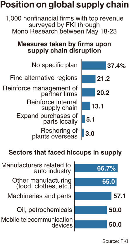 Среди респондентов 56,7% заявили, что пострадали от пандемии, нарушившей поставку деталей и материалов. Опрос также показал, что 48,4 процента ожидают реорганизации глобальных цепочек поставок в будущем, хотя 37,4 процента из них заявили, что имеют альтернативные планы.