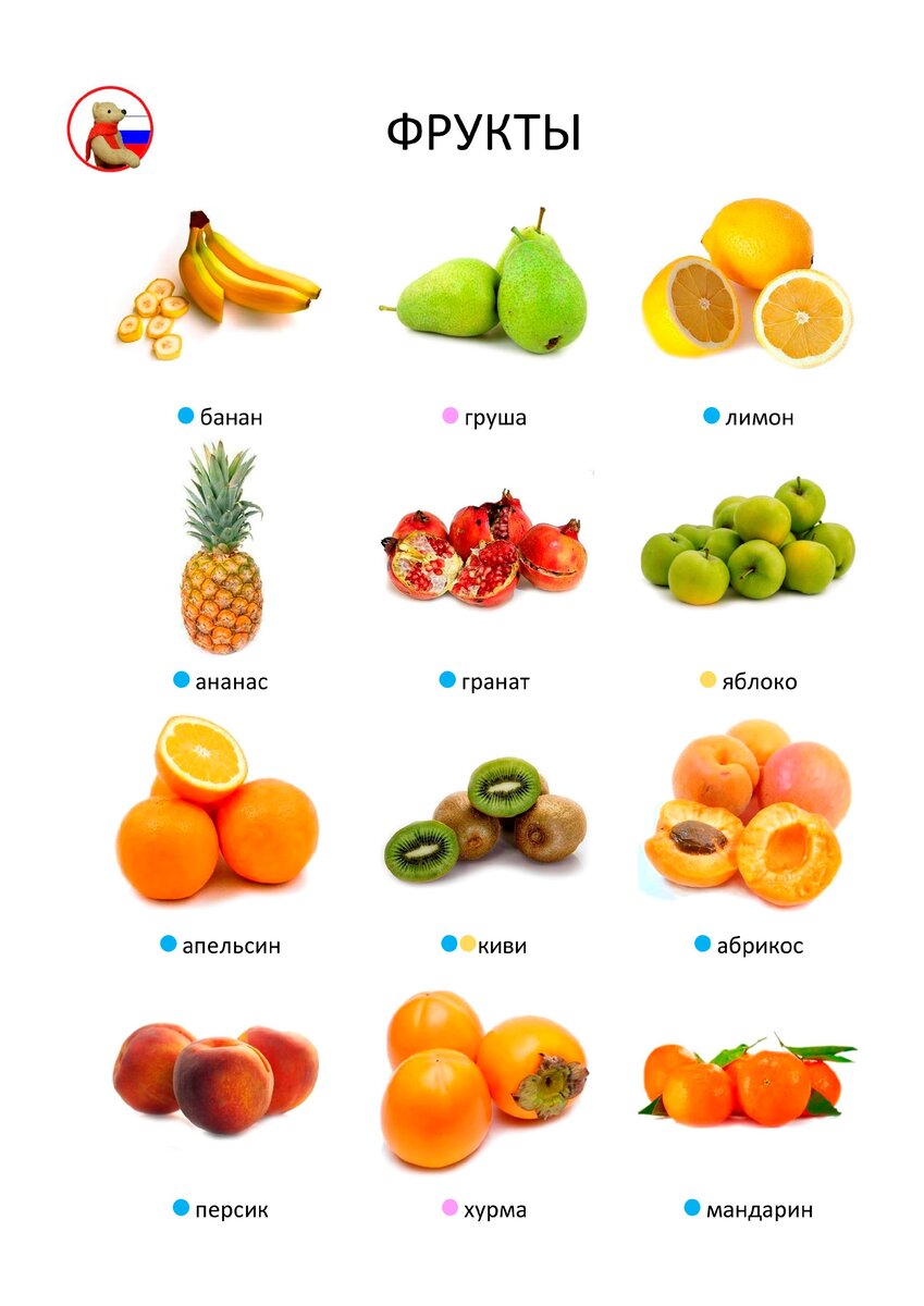 Инфографика для изучения русского языкаместе веселее! Цветными точками указан род имен существительных: голубой - мужской, розовый - женский, желтый - средний. Фрукты на английском языке на французском языке китайском языке Инфографика, статьи и готовые кейсы по разным предметам и четырем языкам (русский, английский, французский и китайский) на канале Misha & funny stories Подписывайтесь на канал и пользуйтесь полезным ресурсом