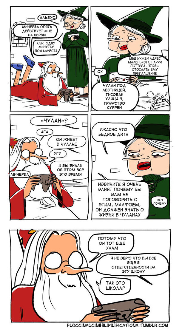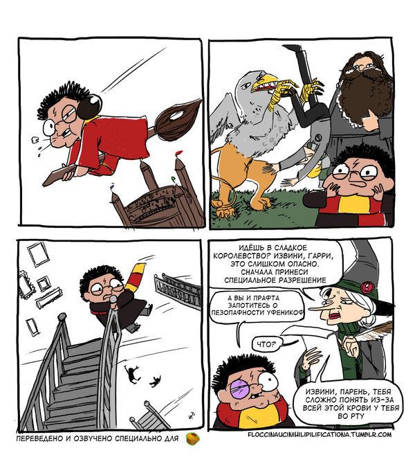 И снова приветствую вас на своем канале. Это уже становится постоянной рубрикой, которую вы так полюбили, так что сегодня новую серию я выкладываю чуть раньше, чем обычно) как всегда, ссылки на другие части вы найдёте в конце статьи. А мы пока начнем! Вы посмотрите на эти ножки *о* Тоже никогда не могла понять, зачем нужно разрешение на поход в магазин? Я уже говорила, что обожаю четвертую часть?? Взрослая жизнь, кредиты и так далее, ну ты понимаешь, да? Это самый мудрый профессор, единственный человек, которого боялся Володя Король сарказма и похититель твоего сердечка *РРРРРР* Последняя часть самая страшная.. Возможно, они уже мертвы Ну и бонус для вас, мои любимые Фантастическая задница Дамблдора и где она обитает И как я и обещала, ссылки на первые четыре части комиксов: Также, на моем канале вы можете найти комиксы о питомцах и статьи об отношении старшего поколения к современной музыке. Ставьте лайки, подписывайтесь на канал и пишите, продолжать эту рубрику или нет? А с вами