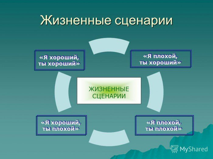 Есть 4 сценария жизни. В итоге от того, какого сценария придерживается человек в жизни, он(а) этот сценарий переносит на развитие сетевого бизнеса.
