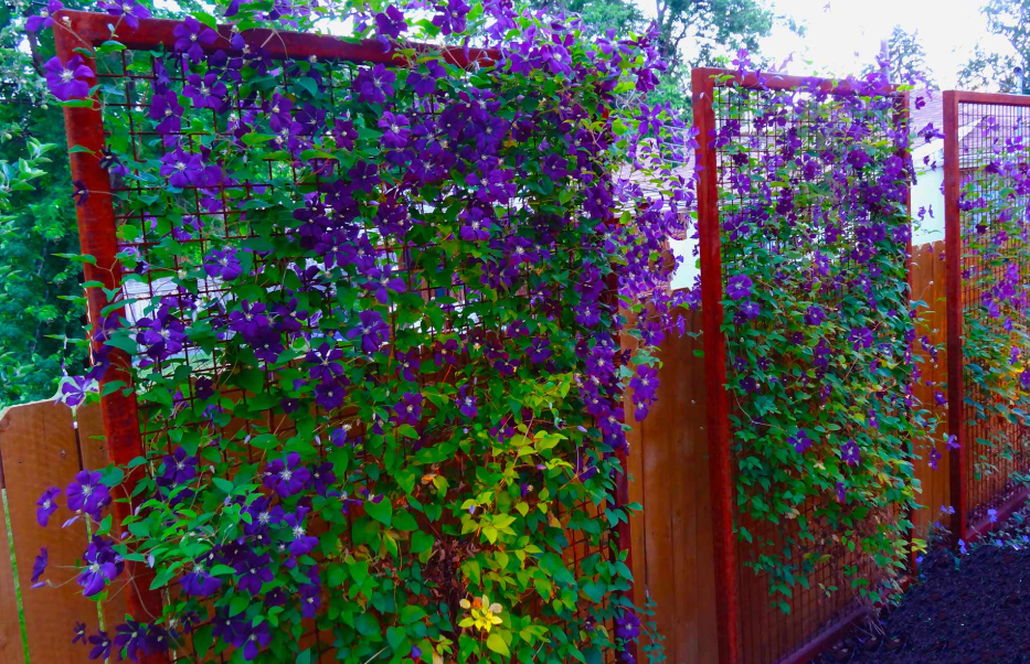 Я не люблю, когда у меня на дачном участке остаются пустующие места, мне нравится, когда вся территория засажена и наполнена зеленью. Но зоны вдоль забора не подходят для выращивания культурных растений, и чтобы они не оставались без дела, здесь можно посадить определенные растения, которые смогут создать уютный уголок, скроют от палящего и жаркого солнца в летние дни. Если в качестве забора используется сетка-рабица, то в этом случае не придется особо заморачиваться и выдумывать. Для данных ограждений подойдут растения в виде лиан, которые оплетают сетку с двух сторон, образуя сплошную зеленую стену с яркими и ароматными цветами. Выбор лиан огромный, можно посадить многолетние и однолетние растения. Отличным украшением сетки типа рабица станет известный клематис. Это растение можно выращивать практически в любом регионе нашей страны. Но не стоит забывать про кусты, которые также отлично растут вдоль заборов. Подходящим вариантом будет барбарис, он сможет стать самостоятельным огражд