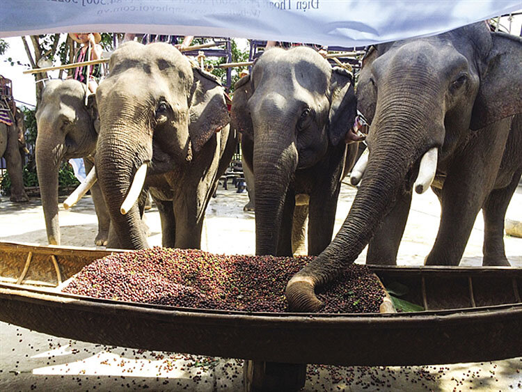 «Блэк а́йвори»— сорт кофе, производимый из зерен арабики.пропущенных через пищеварительный тракт слонов.Производится в Таиланде и является самым дорогим сортом кофе в мире. Обработка кофейных зёрен в пищеварительном тракте связана с тем, что после попадания в желудок слона его желудочная кислота разрушает белок, заставляющий кофе горчить. В итоге, по мнению дегустаторов, получается мягкий напиток без обычной для кофе горечи. Слон переваривает зерна в период времени от 15 до 30 часов вместе со своей обычной пищей — бананами, сахарным тростником и прочими компонентами слоновьего вегетарианского рациона. Во время переваривания зёрна пропитываются землистым и фруктовым запахом, проходя процесс естественной ферментации . Чтобы получить один килограмм «блэк айвори», необходимо скормить слону 33 килограмма свежих кофейных ягод. Большая часть зёрен пережевывается, разламывается или теряется в высокой траве уже после испражнения. После испражнения слоновые погонщики собирают навоз, разминают