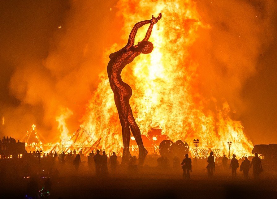 «Burning Man» (англ.) (в буквальном переводе — «горящий человек») — ежегодное восьмидневное событие, происходящее в пустыне Блэк-Рок (англ. Black Rock Desert) (США, штат Невада). Фестиваль начинается в последний понедельник августа, в ноль часов одну минуту. Последний день приходится на День Труда, официальный праздник, отмечаемый в США в первый понедельник сентября, выходной день для большинства организаций. Кульминация происходит в субботу после заката, когда сжигают огромную деревянную статую человека. Сами организаторы определяют событие как эксперимент по созданию сообщества радикального самовыражения, при этом полностью полагающегося только на себя (англ. radical self-expression, and radical self-reliance). На неделю в пустыне устанавливаются произведения современного искусства, часто фантастических форм. Некоторые из них сжигаются создателями до окончания «Burning Man». Там ездят сотни «мутированных» машин (англ. mutant vehicles) самого невероятного облика, многие участники х
