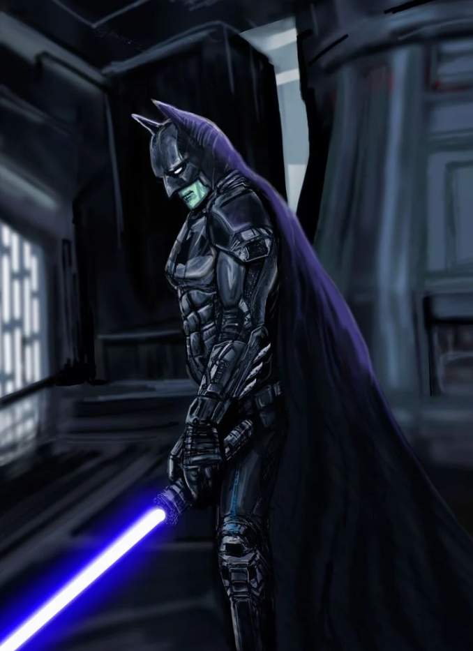 Автор этой работы дал Тёмному Рыцарю синий световой меч, и единственным недостатком этой версии крестоносца в плаще является то, что ему будет чрезвычайно трудно оставаться верным главному правилу супергероя – не убивать.