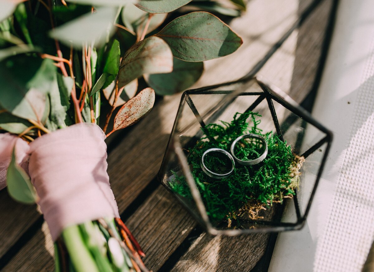 После торжества у супругов из свадебных атрибутов остаются только фотографии, возможно какие-то тематические аксессуары, сохранившиеся от украшения зала, автомобиля или конкурсов, и обручальные кольца. Эти небольшие драгоценные украшения всю жизнь будут напоминать молодожёнам о ярких эмоциях, трепетных чувствах, пылких клятвах в вечной любви, которые ими были даны в момент соединения своих судеб.