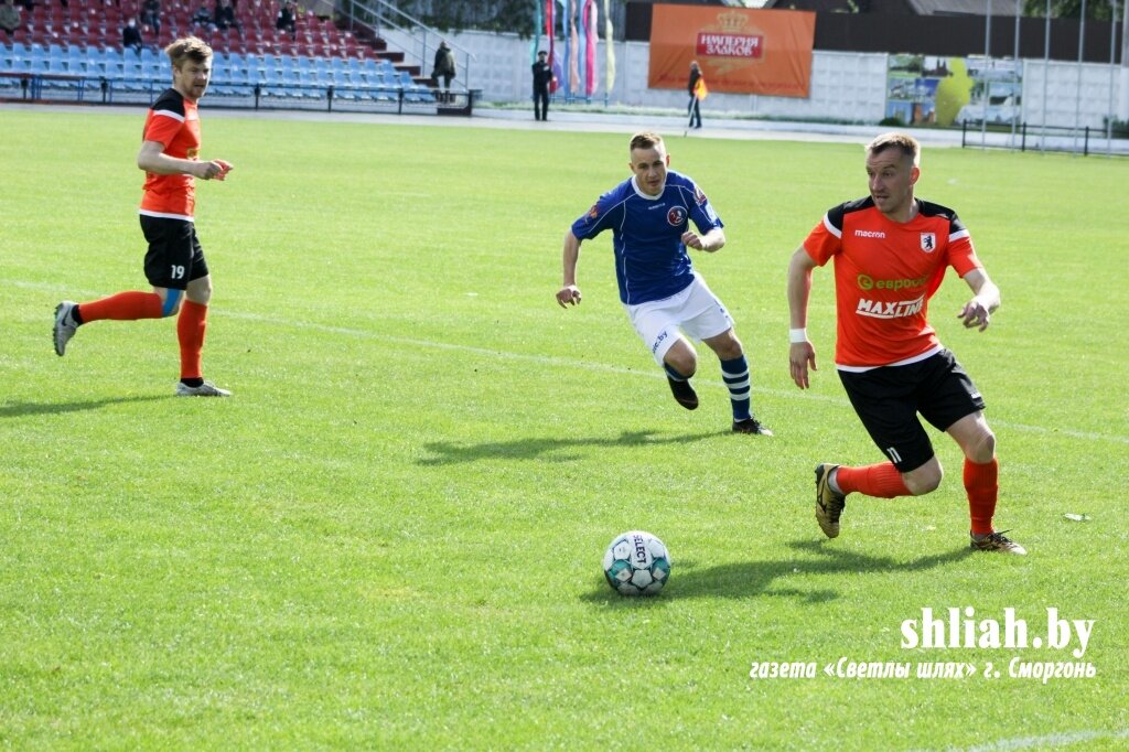 В рамках 7-го тура чемпионата Беларуси по футболу среди команд первой лиги ФК «Сморгонь» в сложном домашнем матче сыграла вничью с ФК «Ошмяны-БГУФК» - 1:1. Жаркой получилась игра между соседями. Стадион был наполнен болельщиками, а глаза игроков – жаждой победы. Хозяева с первых минут начали вести активную игру. Прессинг игроков соперника и контроль мяча способствовали на 8-й минуте матча открыть счёт. Гол в ворота соперника забил Алан Мистулов. Лишь во втором тайме гости сумели сравнять счёт.
