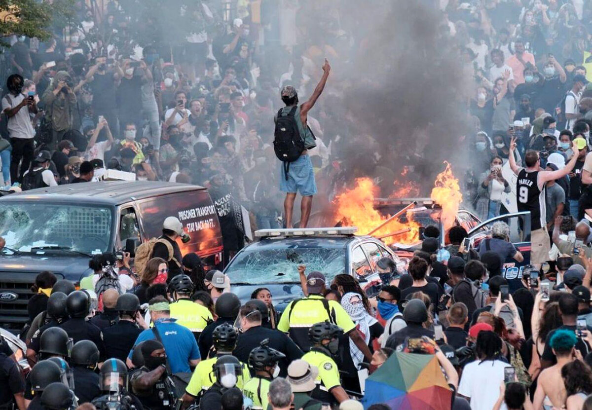 Полицейские использовали светошумовые гранаты, чтобы разогнать толпу, чтобы президент мог посетить ее для фотосъемки. А в Нью-Йорке протестующие и мародеры бросили вызов комендантскому часу. На фоне нарастающих протестов, омраченных насилием и грабежами, президент Трамп пригрозил развернуть американские вооруженные силы. Сотрудники полиции в нескольких городах получили ранения в результате перестрелки и столкновения с автомобилями. Прямо сейчас Нью-Йорк будет находиться под комендантским часом в 8 вечера во вторник после волны грабежей по всему Манхэттену. После недели беспорядков Трамп угрожает развернуть военные силы на улицах США. Слезоточивый газ и светошумовые гранаты были применены против мирных демонстрантов у Белого дома, когда военные вертолеты низко пронеслись над улицами столицы страны. Магазины на Манхэттене были разграблены, оставив после себя следы разбитого стекла и заколоченных окон. В Лос-Анджелесе жителей предупреждали избегать Голливуда из-за грабежей “пеш