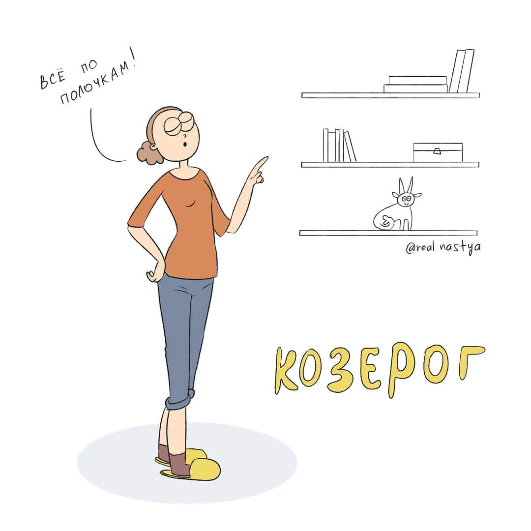 Художница Анастасия Лыкова прекрасно иллюстрирует каждый гороскоп в своих милых комиксах. Зодиакальный гороскоп и описание характеристик знаков зодиака, считается очень популярным . Трудно найти человека который не знал бы своего знака зодиака.В этих комиксах каждая девушка найдет свой гороскоп с кратким характеристиками! #гороскопы #комикс 1. Козерог Козероги - всё у них слажено и продумано, запланировано и "по полочкам. Обладает даром не терять из виду главную цель, устойчив к трудностям и ответственен. 2. Водолей Водолей ‐ яркий индивидуалист, не выносит рутины и скучных обязанностей. Независимость — как главное условие деятельности. Обладает свободолюбием и чудачеством. 3.Рыбы Рыбы - чувственные, ранимые, нежные. Витают в облаках, мечтая о насущном и не только. Среди этого знака самый большой процент творческих личностей. 4. Овен Овен - по истине огненный знак. Упрямые, но эта упертость помогает другому качеству - целеустремлённости. А ещё это весьма энергичные и а