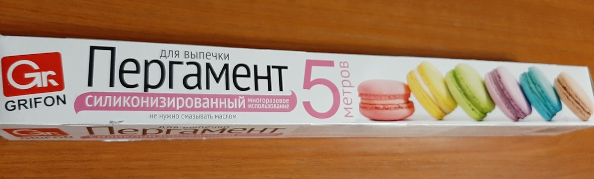 Добрый день, уважаемые читатели! Как человек, любящий печь и готовить десерты, я естественно очень часто покупаю в магазине бумагу для выпечки или пергамент. У меня даже есть 2 силиконовых коврика, но сейчас я ими совсем не пользуюсь, может, позже напишу и о них) Этот пергамент выпускает довольно известная фирма. Покупала я его в "Ленте", стоил он 99 рублей за 5 метров. То есть, вы понимаете, что это не так уж дёшево. Производитель обещает, что ничего к пергаменту не прилипнет, потому что он силиконизированный, а ещё его можно использовать несколько раз. Я таким не занимаюсь) Всё-таки, для каждой отдельной выпечки - свой кусок бумаги) Пусть ничего и не прилипнет, но масло-то останется, пусть и не впитается. В ширину пергамент 38 сантиметров. Цвет белый. Внутри скреплён скотчем и имеет, как ни странно, неровный срез. Так же на упаковке сказано, что можно использовать силиконизированный пергамент для хранения и заморозки продуктов (но это как-то накладно уже). Лист, как вы видите,