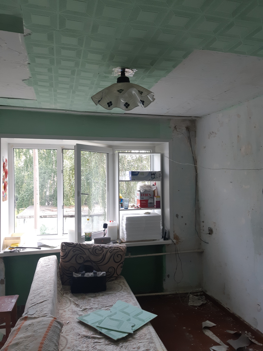 Вся история началась с покупки данной квартиры, молодая семья купила себе квартиру и решили избавиться от бабушкиного интерьера в квартире. Начали ремонт, подготовка, визуальное подравнивание стен, шпаклевка стен, поклейка обоев, замена линолеума, переклейка потолочной плитки, работы по электрике и сопутствующие мелочи. Для начала провели демонтаж потолочной плитки, убрали старые обои, плинтуса и линолеум. Решили сделать перепланировку розеток, пришлось заменить полностью кабель в комнате. Потому что освещение играет важную роль в интерьере, можно разделить подсветку по зонам. План освещения представляет собой детальный чертеж, на котором представлены все возможные виды осветительных приборов, их количество, мощность и яркость. Под каждый тип помещения подбирается свой осветительный прибор. При составлении такого плана необходимо сразу решить, где будут располагаться источники освещения, возможно это будет один общий в центре потолка или же наоборот – комбинированные, которые освещ