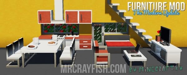 MrCrayfish's Furniture Mod Мод под названием Mr. CrayFish's Furniture Mod добавляет в игру еще больше декоративной составляющей, теперь в игре станут доступны предметы для повседневного быта, такие как: