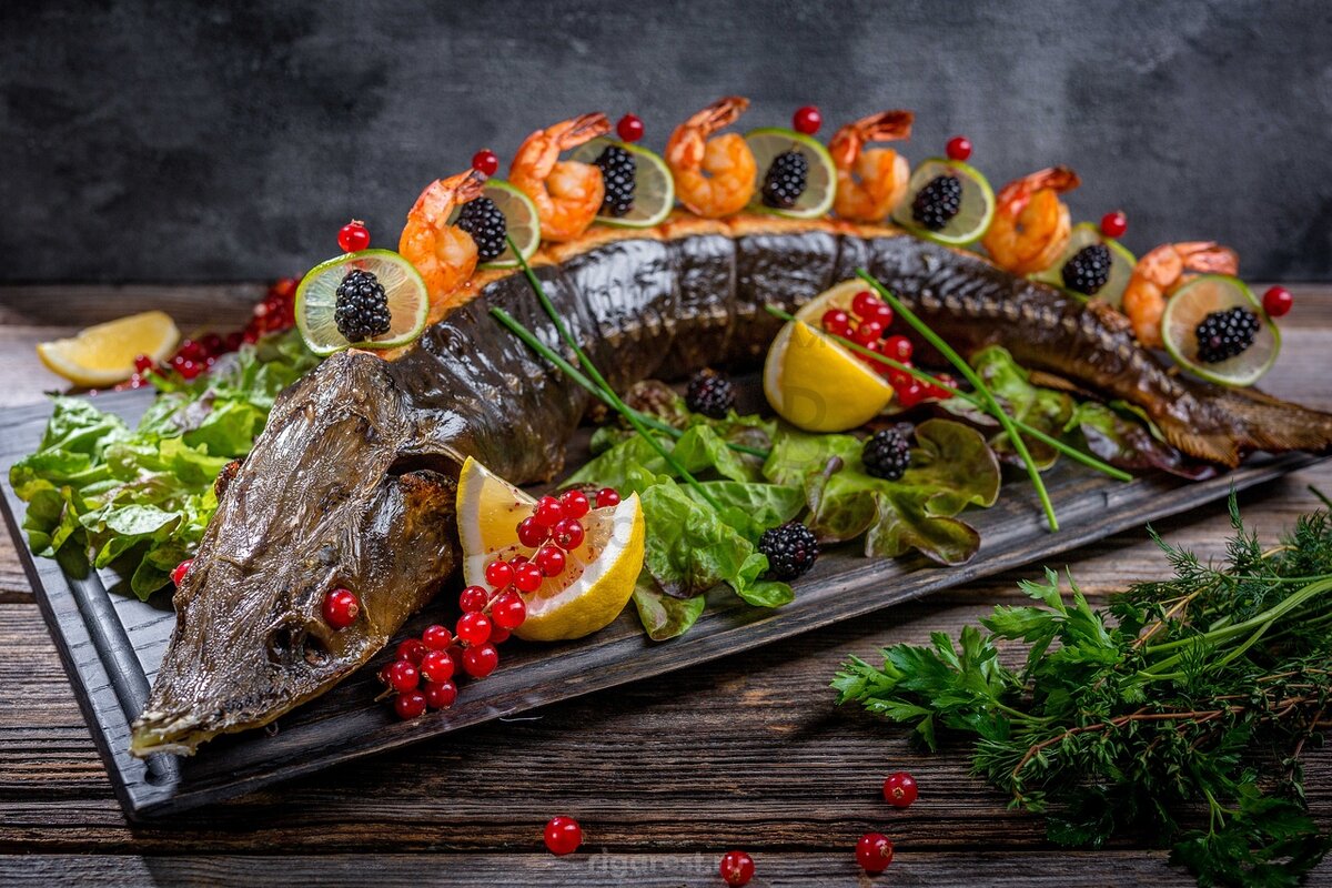 "Стерлядь, одну из самых нежных на свете рыб, ловят в Волге, где она водится в изобилии; в ней есть нечто и от морской и от пресноводной рыбы, хотя она и не походит ни на одну из тех, что едал я в других краях; она крупная, с мягким легким мясом, кожа у нее восхитительна на вкус, а особенно лакомою считается остроносая, вся в хрящах голова; подают это чудо-юдо с изысканными, не слишком пряными приправами, под соусом, имеющим вкус одновременно вина, бульона и лимонного сока.