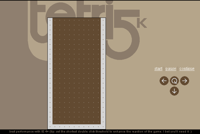 Моя работа вошла типа в двадцатку, что ли, в общем тоже была отмечена парой хвалебных комментариев от жюри. Для этого конкурса я решил сделать веб-страницу, на которой можно играть в Тетрис.