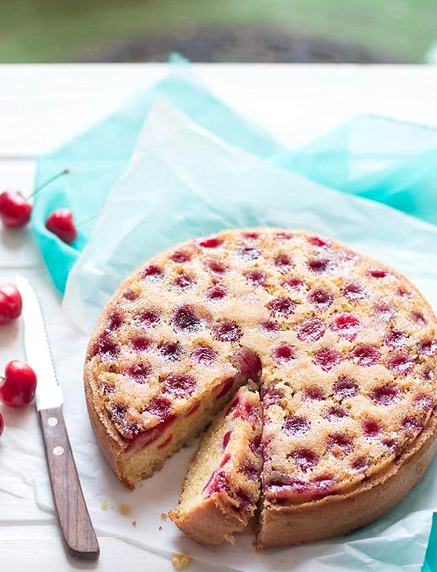 В Италии вовсю продается черешня, поэтому предлагаю вам попробовать испечь пирог с ней. Влажный, нежный, с карамельной корочкой сверху, тающий во рту, а самое главное просто и быстро готовящийся. Все ингредиенты у вас уже есть дома, осталось купить черешню.) А еще, поделюсь секретом, как сделать так, чтобы черешня осталась сверху пирога и не осела на дно, как это часто случается с фруктами.))