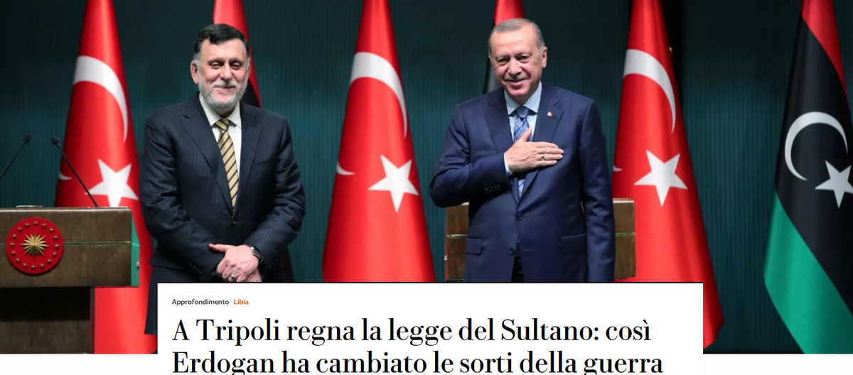 Популярная Итальянская газета "La Repubblica" 4 июня вышла с заголовками о победе Эрдогана в Ливийском конфликте. Как раз в эти дни (3-4 июня), Анкару посетил Премьер-министр Правительства Национального Согласия Ливии - Фаиз Сарадж, сторону которой и приняла Турция вооружив ПНС для борьбы с армией Халифа Хафтера.