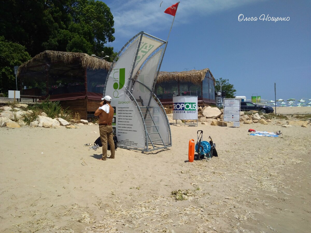 А обстановка такая: спасательная вышка стоит, раздевалка на месте, спасатель готов спасать! Только на пляже четыре!!! человека!