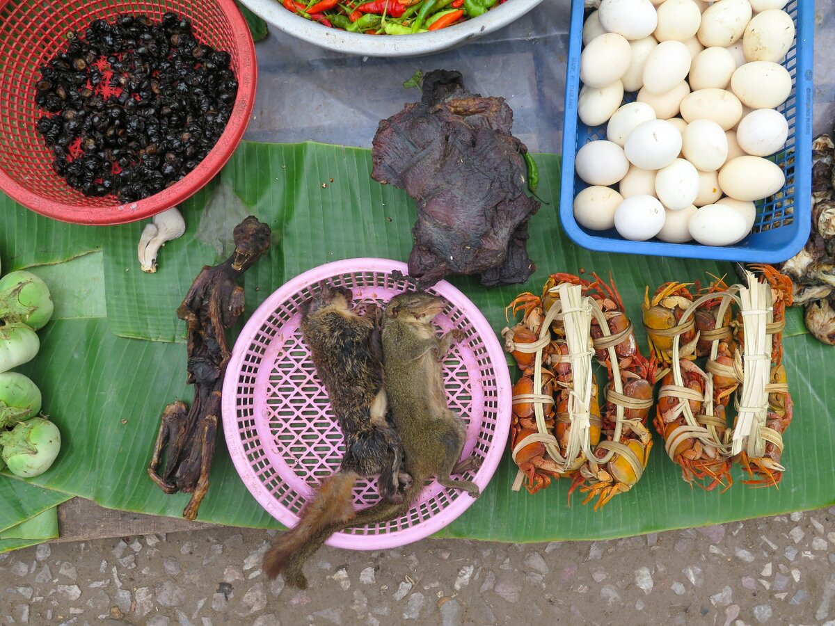 Если вы хотите быть шокированным - вставайте как можно раньше. И когда все остальные путешественники пойдут смотреть на утреннюю кормежку монахов, вы отправляйтесь от Храмовой горы в сторону Меконга. Именно в этой точке расположился рынок "для своих". На него приходят не профессиональные торговцы, а рядовые жители. Поэтому рынок работает столь короткий срок, всего с 6 до 8 утра. В продаже то что выросло на огороде или что поймано своими руками. на том, что поймано остановимся поподробнее. Например: