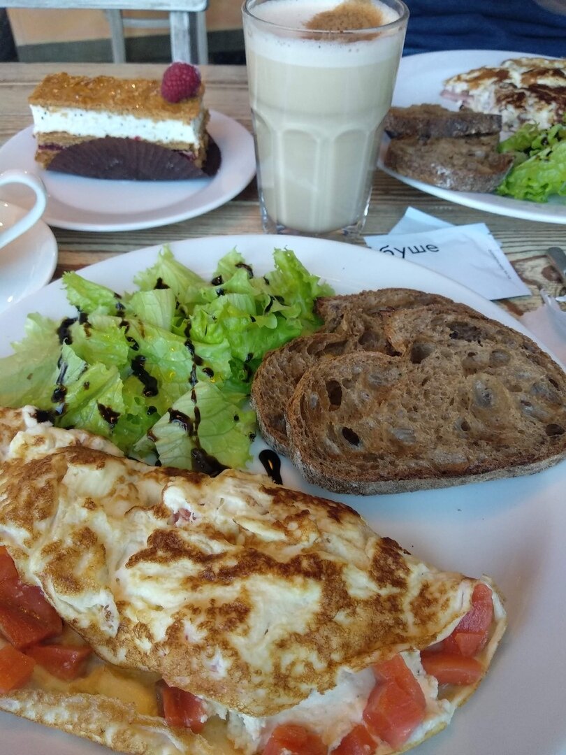Ох уж этот легендарный омлет с лососем в Петербургском "Буше"... Кто пробовал, вряд ли его забудет. Но такой омлет легко приготовить и дома, и в этой статье я поделюсь основными моментами, на которые стоит обратить внимание. На одну большую порцию омлета нам потребуется: Начнем: 1. Соединить и тщательно перемешать яйца и молоко. Добавить щепотку соли и молотого перца. 2. Разогреть сковороду с небольшим количество растительного масла и добавить мааааленький кусочек сливочного масла. Это придаст дополнительный сливочный вкус омлету. 3. Выливаем яично-молочную смесь на сковородку и жарим с 2 сторон на средней температуре, под крышкой. 4. На готовый омлет начинаем выкладывать начинку и здесь главное не жалеть ее. Обильно выкладываем творожный сыр и ждем, пока он начнет таять. Подтаявший творожный сыр толстым слоем размазываем по половинке нашего омлета и сверху выкладываем кусочки слабосоленого лосося. Лосось тоже не надо жалеть, ведь это основная начинка и вкус омлета. И поверьте мне, с