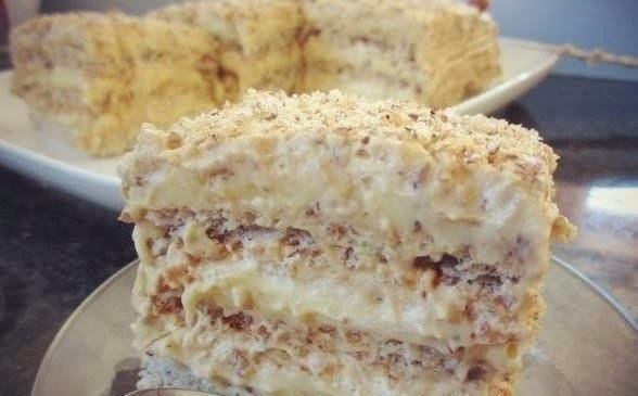 Крем: 10 желтков, 10 ст.л. сахара, 5 ст.л. муки, 2 пакетика ванильного сахара, 350 мл. молока, 170 гр. сливочного масла.