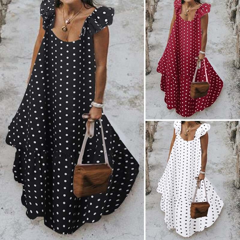 Доброго времени суток всем! Продолжаем главную тему сезона – «mini-maxi». В этой статье посмотрим платья-макси. А платья-мини найдёте в предыдущей статье. Платья макси можно носить как стройным, так и полным дамам. Лучше всего смотрятся на высоких девушках. Интересные и кокетливые решения на лето – это летние платья и сарафаны с принтами. Изысканно и оригинально выглядят платья макси с оборками, разрезами и глубокими вырезами. 1. Сарафан с оборками. Настоящий хит сезона - воланы, оборки и открытые плечи. Если в вашем гардеробе еще нет похожей модели, то сейчас самое время присмотреться к этому сарафану. Этот сарафан - лёгкий и свободный - спасёт в самый жаркий летний день. Сарафан в горошек (чёрный, белый, винно-красный) пошит из полиэстера, а сарафан с леопардовым принтом (коричневый, серый) - из икуственного шелка. Заказать можно тут. 2. Повседневное длинное платье. Однотонные платья смотрятся стильно и смело. Нужно только правильно подобрать подходящий оттенок. Данное платье