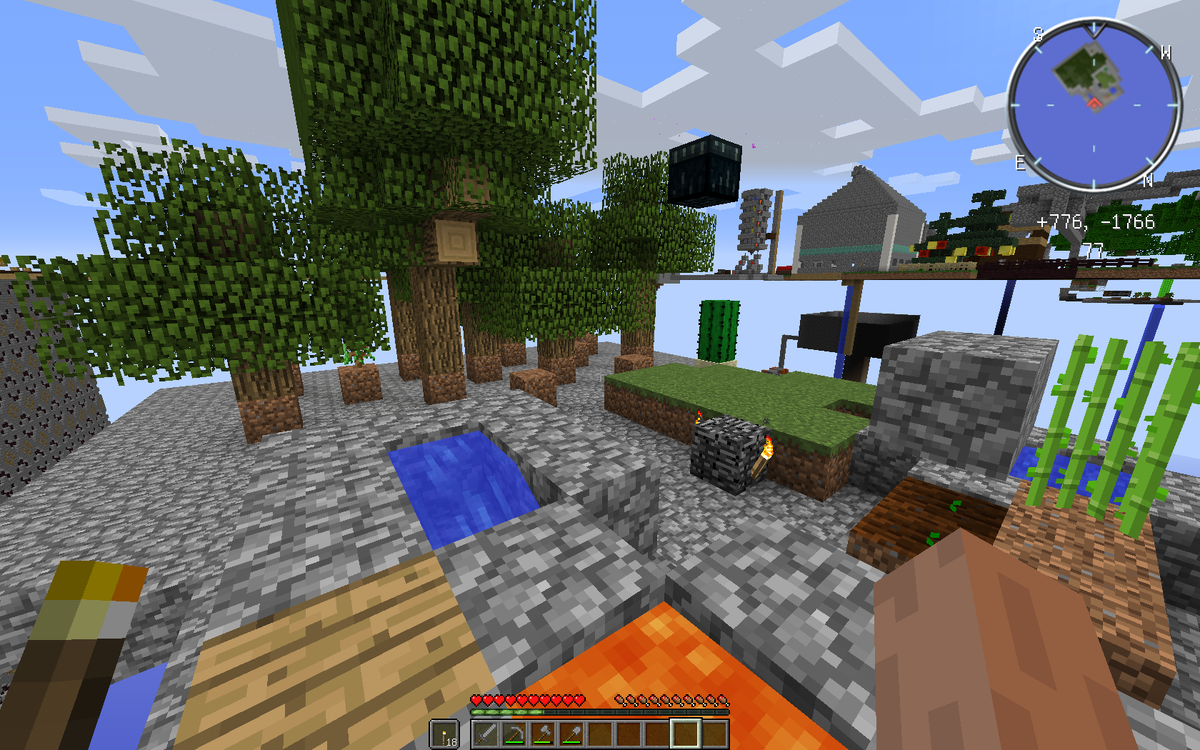Ссылка на первую часть В игре не сервере есть один большой плюс - есть вероятность, что рядом кто-нибудь поселится, а значит "огород" будет расти даже если ты не играешь. :) В прошлой части я оставил остров с только высаженными саженцами, а когда вернулся, то меня встретила дубовая роща! :) Да и тростник с кактусом подросли. С сундуками только вот на этом сервере непонятно - вроде обычный устанавливал, а выглядит он как эндер-сундук... Ещё "плюс" игры на сервере в том, что можно установить точку возрождения в любое место на острове и потом телепортироваться в неё по команде "/is home". Вот я и решил сделать себе "спасательную капсулу", куда буду попадать при падении с острова. Смысл её прост - небольшой бассейн, а над ним открытый люк. Когда люк был закрыт, то установил на нём "домашнюю" точку командой "/is sethome". Надеюсь когда нибудь это меня спасёт. :) Надо только успеть открыть чат, написать "/is home" и нажать кнопку Enter. Тест системы прошёл успешно: Ну а теперь о ску