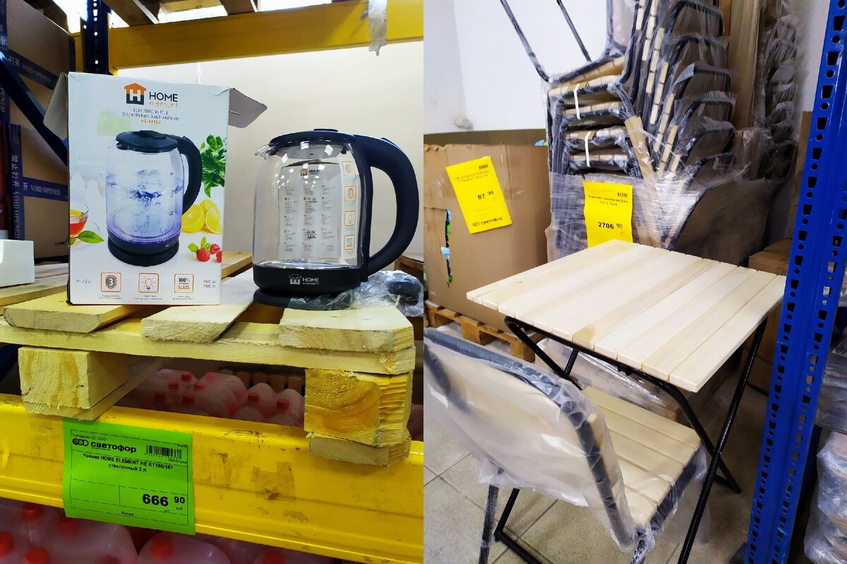 Мне было сегодня очень странно встретить в "Светофоре" своего богатого соседа, у которого я точно знаю есть хороший бизнес. Тоже, как и я приехал на своём джипе в магазин затариться продуктами вместе с женой. Вот так меняются времена. А я прогуливаясь между рядов заметила новинки, которых раньше в продаже никогда не было. И в этом обзоре хочу предложить вам к просмотру, что же в нашем "Светофоре" города Крымск появилось свеженького. Упаковка с конфетами ЧУПА ЧУПС ассорти . В коробке 100 штук по 6 грамм четырёх вкусов. Цена 200 рублей. Молоко сгущенное с сахаром от производителя ГОСТ. В железной банке массой 380 грамм. Цена 47 рублей. Завезли мороженную скумбрию в упаковке 3-4 штуки. Цена за 1 кг 126 рублей. В одном из отсеков холодильника появилось мороженное РОЖОК с ванилью и шоколадное массой 100 грамм. Цена 23 рубля. Электрический чайник со световой подсветкой и отдельной подставкой. Изготовлен из закалённого стекла объёмом 2 литра и мощностью 1800 ватт.Произведён в Китае. Цена 667