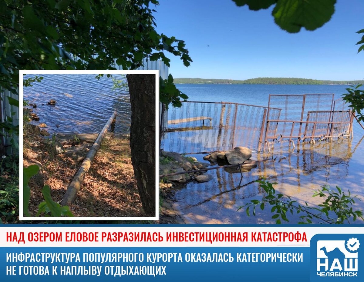 Впрочем, замечены на Еловом и проблемы с чистотой воды. В соцсетях выложены фотографии канализационной трубы, которая ведёт прямо в озеро.