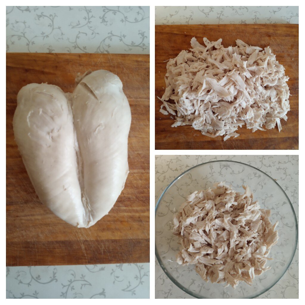 Добрый день, друзья! Сегодня простой рецепт куриного салата. Ингредиенты: - Куриная грудка - 1 шт. - Свежий огурец - 2 шт. - Сыр - 50 гр. - Соус соевый - 2 ч. л. - Сок лимонный - 1 ч. л. - Семена кунжута- 1 ч.л. Приготовление: Куриную грудку отвариваем в подсоленной воде и затем вилкой разделяем на мелкие волокна. Можно порезать ножом, но тоже желательно мелко. Свежий огурец нарезаем соломкой среднего размера. Если шкурка у него грубая, то лучше огурец предварительно почистить. Сыр натираем на мелкой тёрке и добавляем к предыдущим ингредиентам. Для заправки салата смешиваем соевый соус и сок лимона. Солим и заправляем салат. Подаём салат минут через десять, так как нужно чтобы он пропитался соусом. Перед подачей посыпаем сверху семенами кунжута. Приятного аппетита!